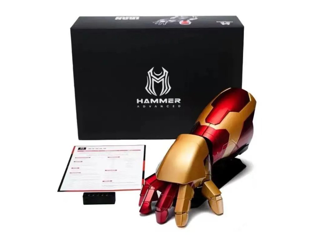 Tato futuristická interaktivní robotická ruka HAMMER MK42 se ovládá hlasem nebo dálkovým ovladačem. Dokáže otevírat a zavírat brnění, vystřelovat laserové efekty a přehrávat autentické zvuky výbuchů a světelné efekty.