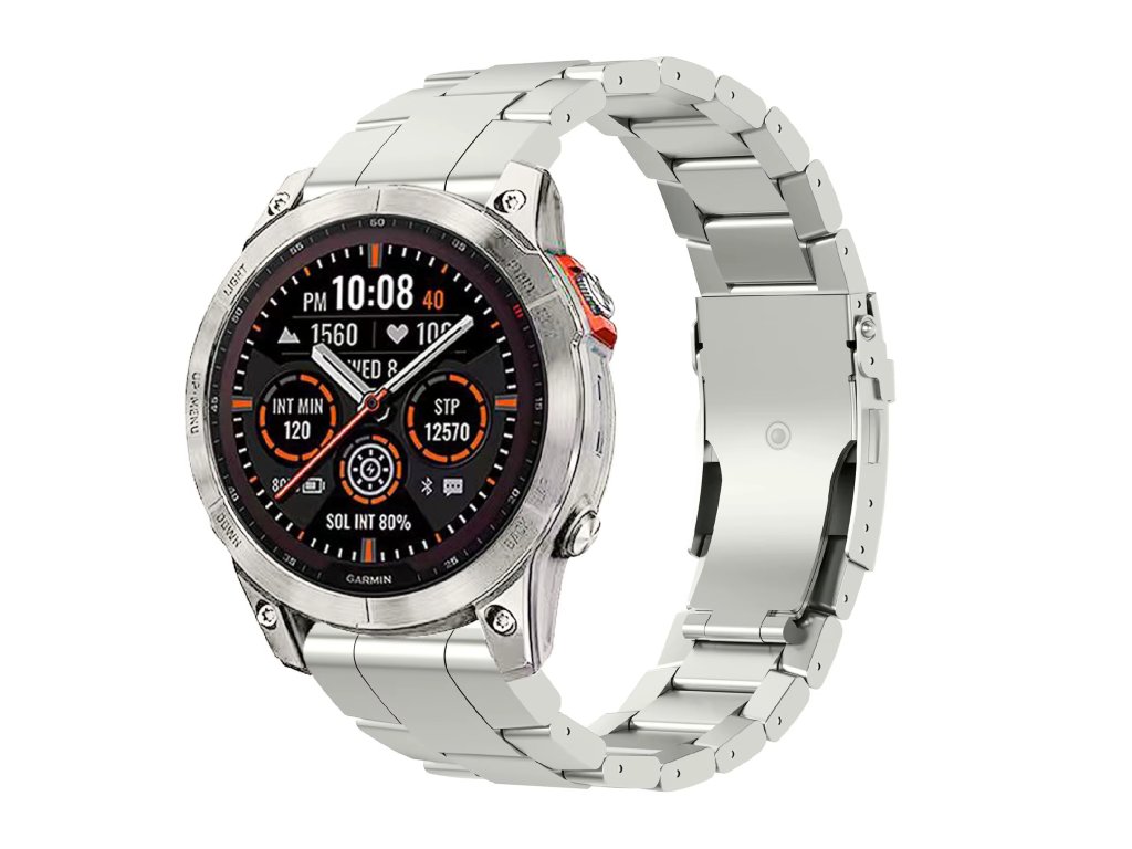 - [Vysoká kvalita] Tento řemínek k hodinkám je vyroben z titanu, využívá přirozené vlastnosti lehké titanu, hypoalergenní a trvanlivý. Jedinečný pětiřadý vnější design personalizuje vaše hodinky Garmin a propůjčuje jim nový, módní styl.