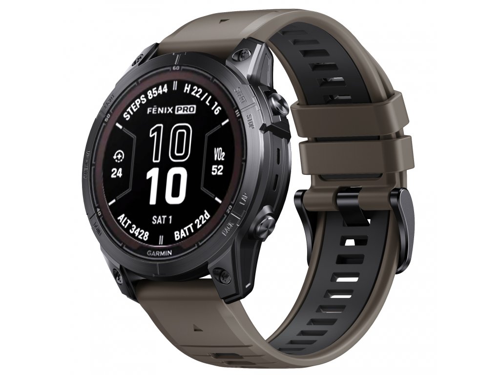CENTRE 22mm hnědý šedý tmavý silikonový gumový řemínek pro Garmin Fenix Epix PRO QuickFit