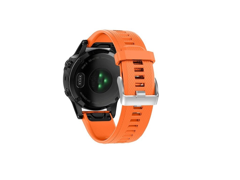 Silikonový gumový řemínek pro Garmin Fenix 22 mm CLASSIC SILVER QuickFit oranžový
