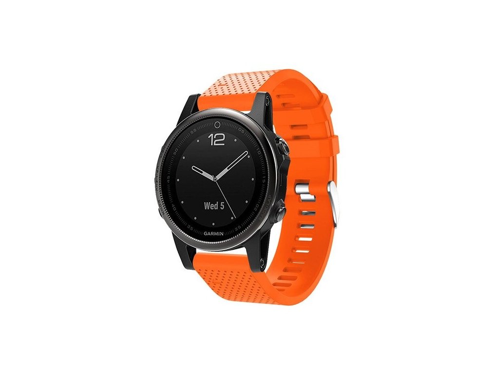 Silikonový gumový řemínek pro Garmin Fenix 5s/6s/7s 20mm DOTS oranžový QuickFit stříbrná přezka