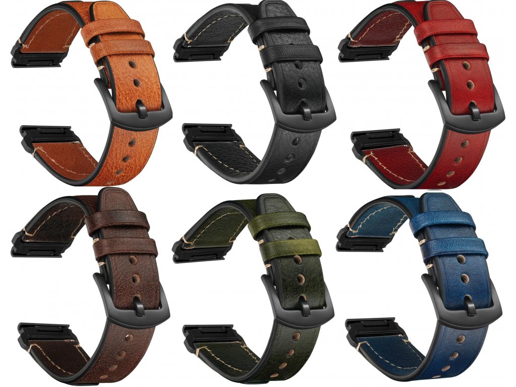 WAX 26mm prošívaný černý hnědý modrý červený zelený kožený řemínek Garmin Fenix Tactix QuickFit